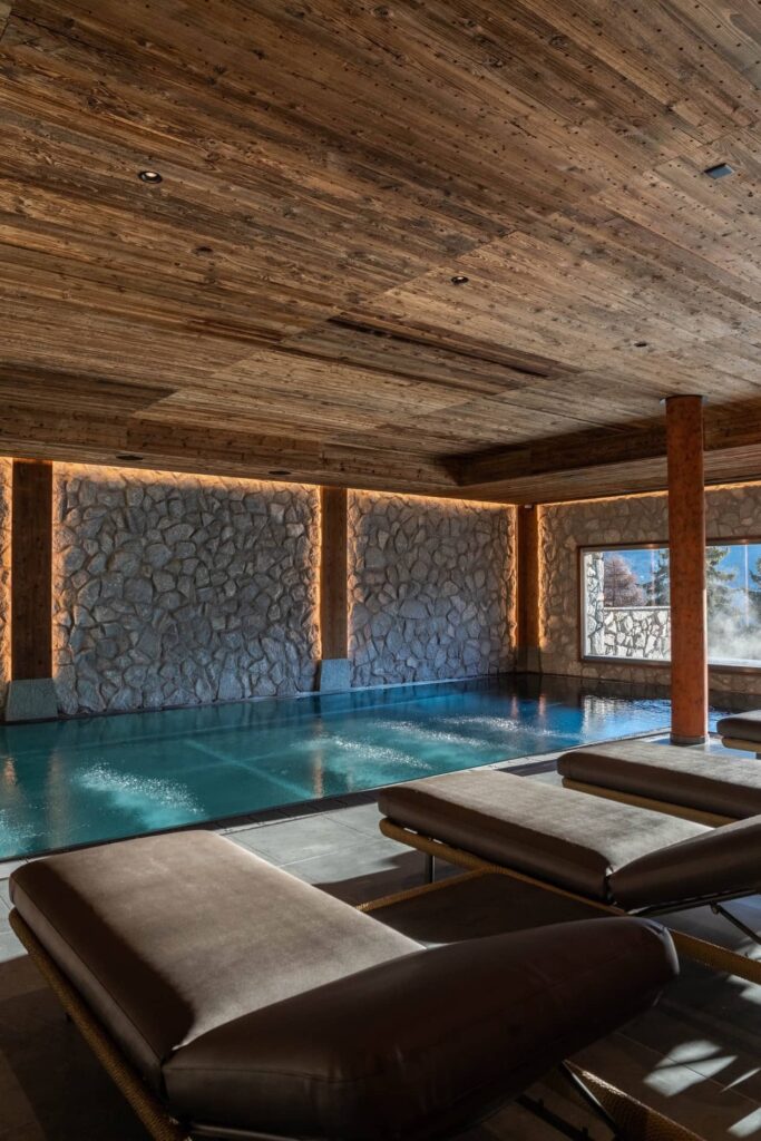 Au cœur de Dent Blanche, le Lumen Spa invite à une expérience unique où nature et détente se rencontrent. Sa piscine intérieure, habillée de pierre et de bois bruts, créent une atmosphère chaleureuse, tandis que la piscine extérieure s’ouvre sur un panorama exceptionnel des sommets.